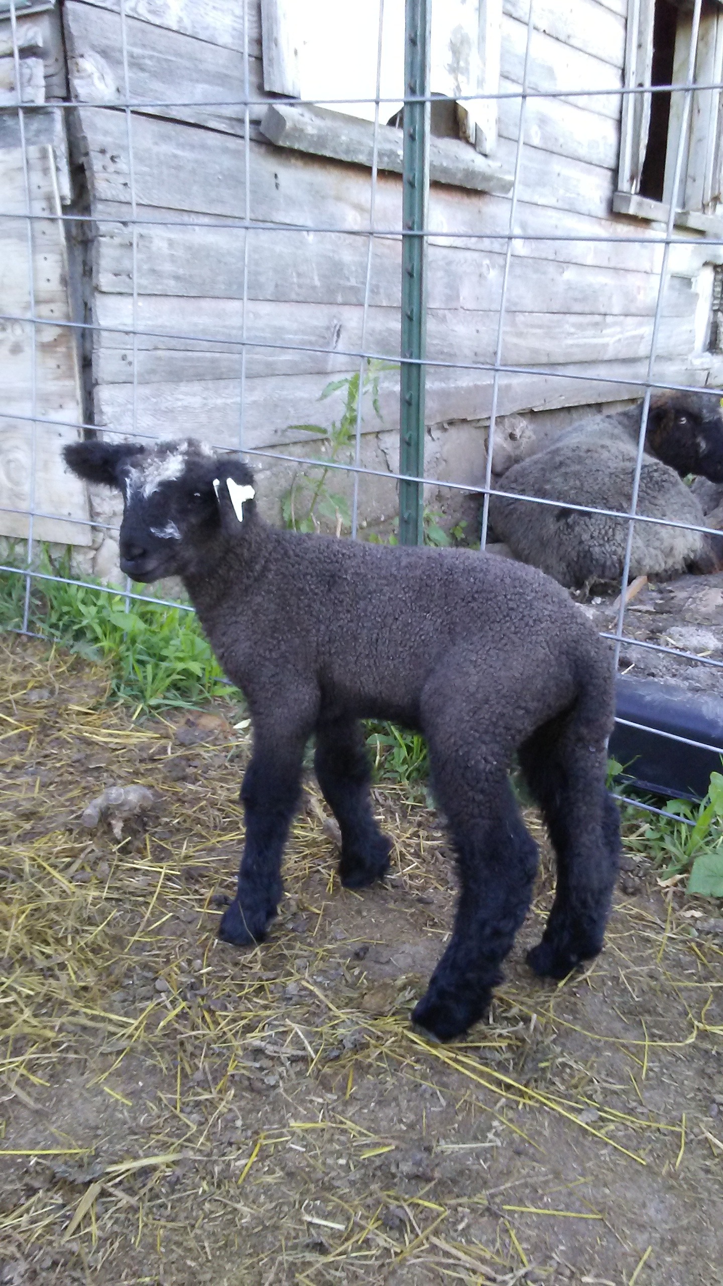 Our darling Bronwyn was born to Irene nearly a month ago (May 30), but we were so intrigued by her markings and coloring that in our excitement to consult a few sheep color experts, she was never properly announced!